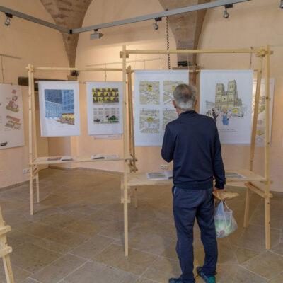 Martin Etienne croque l’architecture et l’urbanisme pour mettre en valeur leurs travers sous les traits de la caricature. Dans l’exposition, découvrons aussi ses dessins pédagogiques qui présentent les nouveaux enjeux de la production architecturale et urbaine.